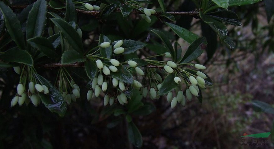 常綠灌木,高1-2米。老枝棕灰色,具條棱和黑色疣點,無毛,幼枝棕黃色,光滑無毛;莖刺粗壯,三分叉,長2.5-5厘米,腹面具槽。葉革質(zhì),長圓狀橢圓形,長3-12厘米,寬1.5-3厘米,先端鈍尖,基部楔形,上面暗栗色;中脈明顯凹陷,側(cè)脈通常12-15對,斜上至邊緣網(wǎng)結(jié),背面黃綠色,中脈明顯隆起,側(cè)脈微隆起,網(wǎng)脈兩面顯著,不被白粉,葉緣有時微向背面反卷,每邊具20-30刺齒;葉柄長2-4毫米?;?-15(-20)朵簇生;花梗長12-15(-20)毫米;花深黃色;萼片2輪,外萼片卵形,長約4毫米,寬約3.5毫米,先端圓鈍,內(nèi)萼片倒卵形或倒卵狀圓形,長5.5毫米,寬5毫米;花瓣長圓狀倒卵形,長約4.5毫米,寬約3毫米,先端微凹,基部不縊縮呈爪,具2枚分離腺體;雄蕊長約3毫米,藥隔先端延伸,微凹;胚珠單生。漿果橢圓形,長6-7毫米,直徑約4毫米,紫黑色,頂端無宿存花柱,微被霜粉?;ㄆ?月,果期11月。